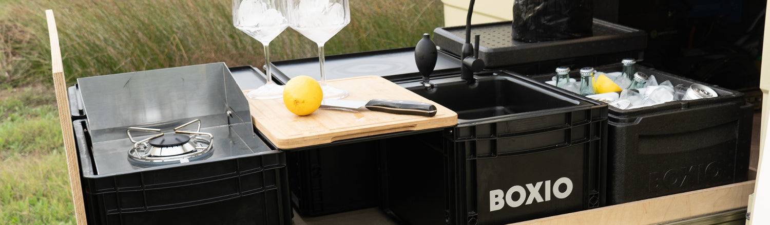 Behind BOXIO is the team from Duschkraft GmbH, founded in 2017 in the beautiful city of Rostock. BOXIO focuses on the system concept: our products are based on the Eurobox format and are designed in such a way that they are ideal for stacking, combining and easy transportation - perfect for camping, vanlife and any outdoor adventure. At the same time, we attach great importance to sustainability and fair prices. Many of our products are manufactured regionally in Rostock and are made from recycled materials to minimize the environmental impact. We offer functional and affordable solutions that not only make your outdoor experience more practical, but also more environmentally conscious.